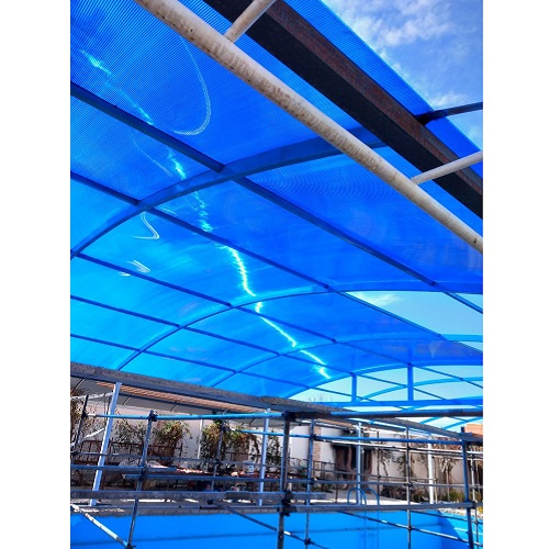 این ورق‌ها به دلیل مقاومت بالا در برابر ضربه، نور خورشید و شرایط محیطی، گزینه‌ای ایده‌آل برای پوشش سقف استخر محسوب می‌شوند. ضخامت و نوع چندجداره بودن ورق‌ها باید متناسب با شرایط اقلیمی و بارگذاری انتخاب شود.